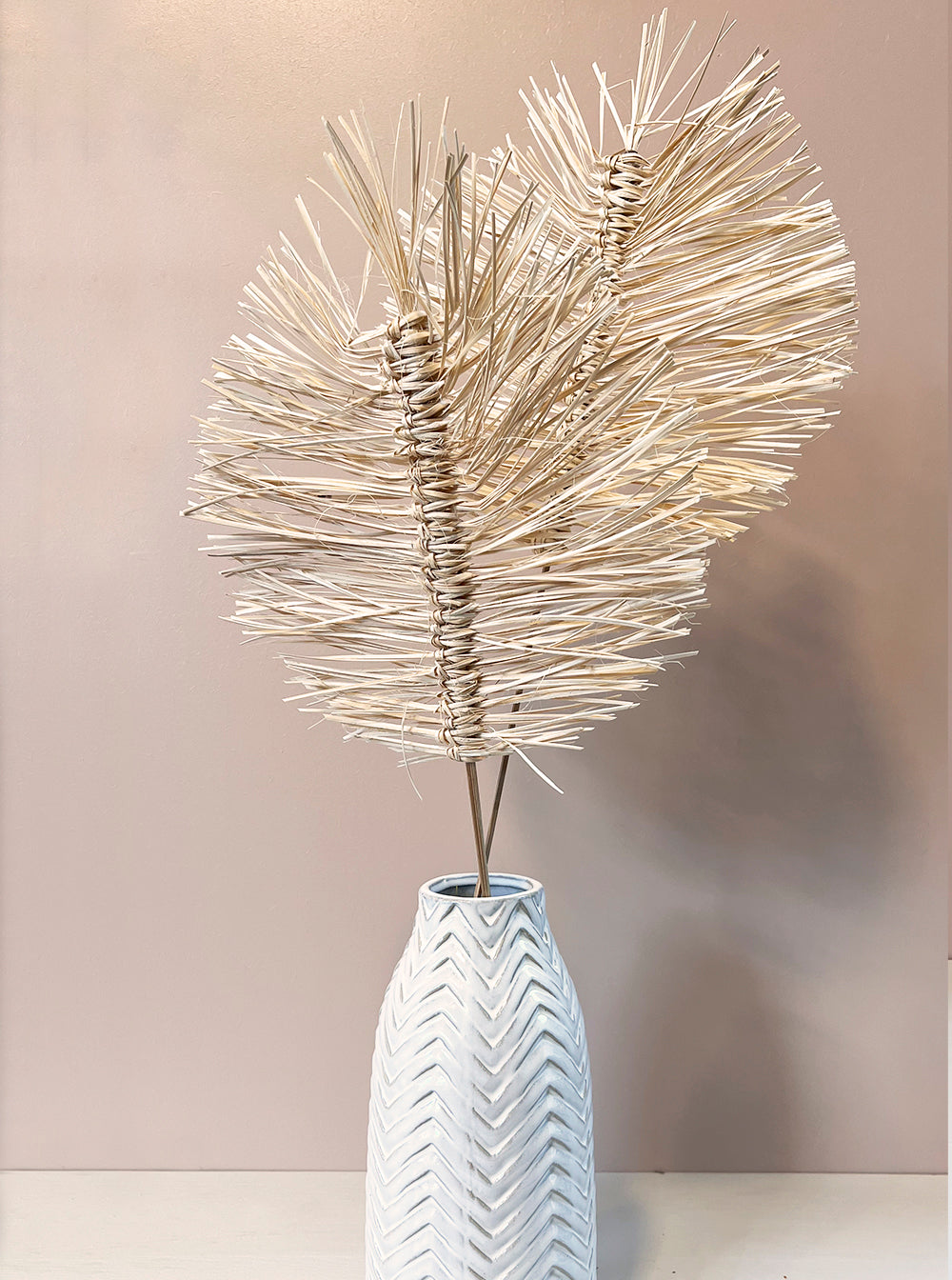Add a touch of boho style to your home decor with our dried palm. The rustic look and natural colors of the palm fronds create a warm and inviting atmosphere that complements any interior design. Use it to decorate a corner, hang it on the wall, or create a stunning centerpiece. Its low maintenance and long-lasting nature means you can enjoy its beauty for years to come. Order yours today and elevate your home decor!